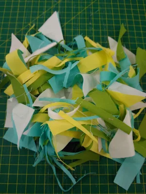 I was feeling listless and started opening my scrap boxes when I came across the yellow, blue and green strips, and I thought why not making another friendship star.
